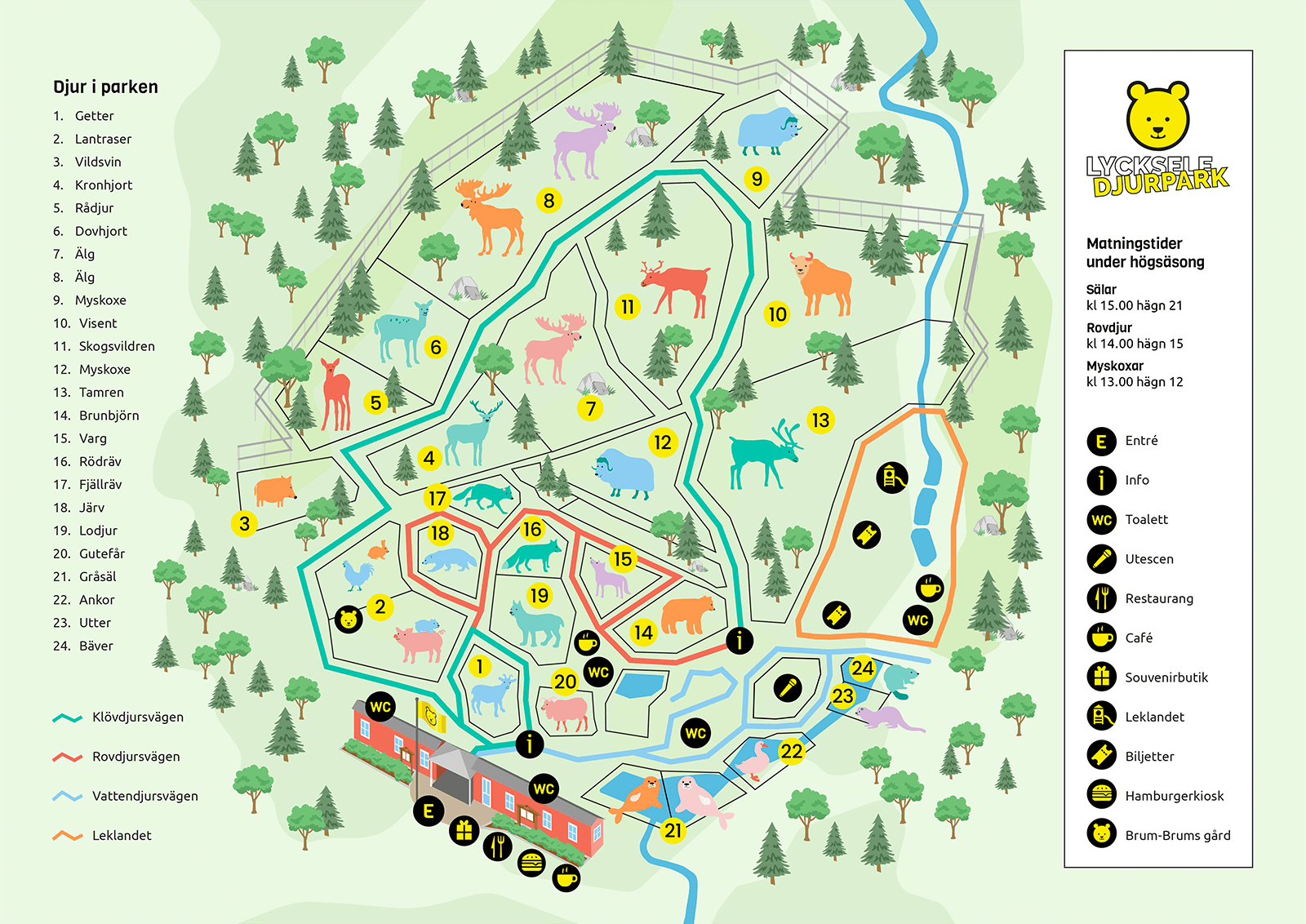 Lycksele Djurpark finns i Västerbottens inland – ca 12,6 mil från Umeå via väg E12, ca 10,3 mil från Storuman (också väg E12) eller 15,5 mil från Skellefteå via väg 370 och väg 365. Tveka inte att höra av dig om du behöver hjälp att hitta oss.